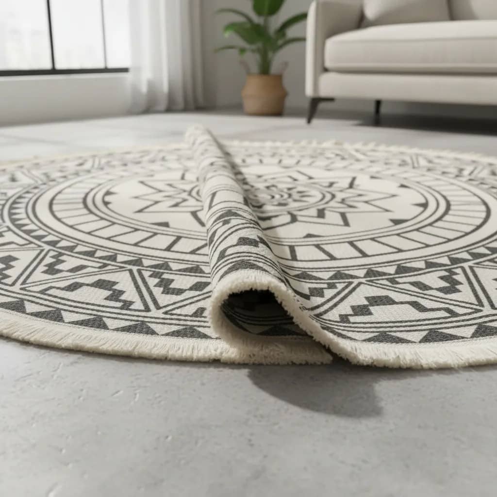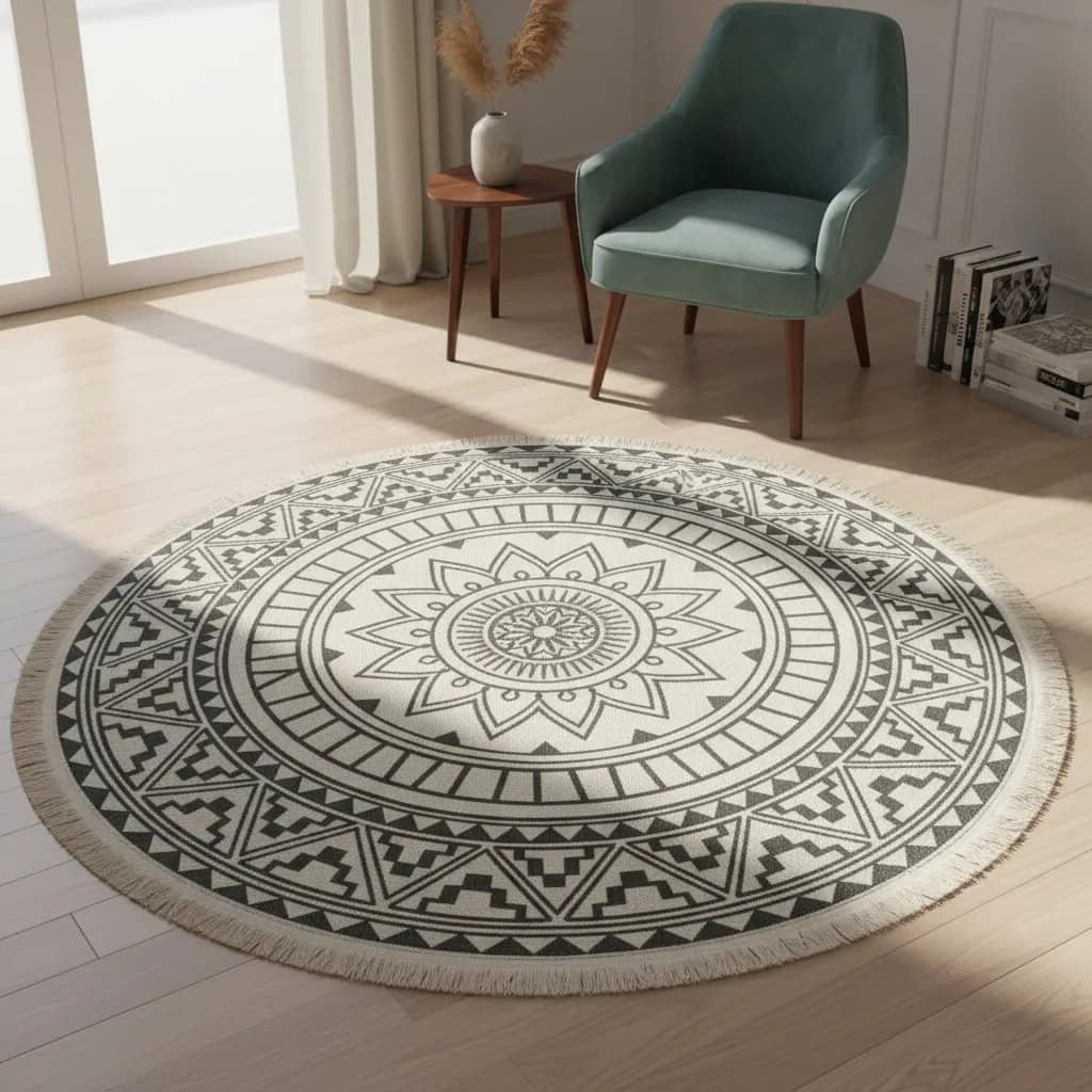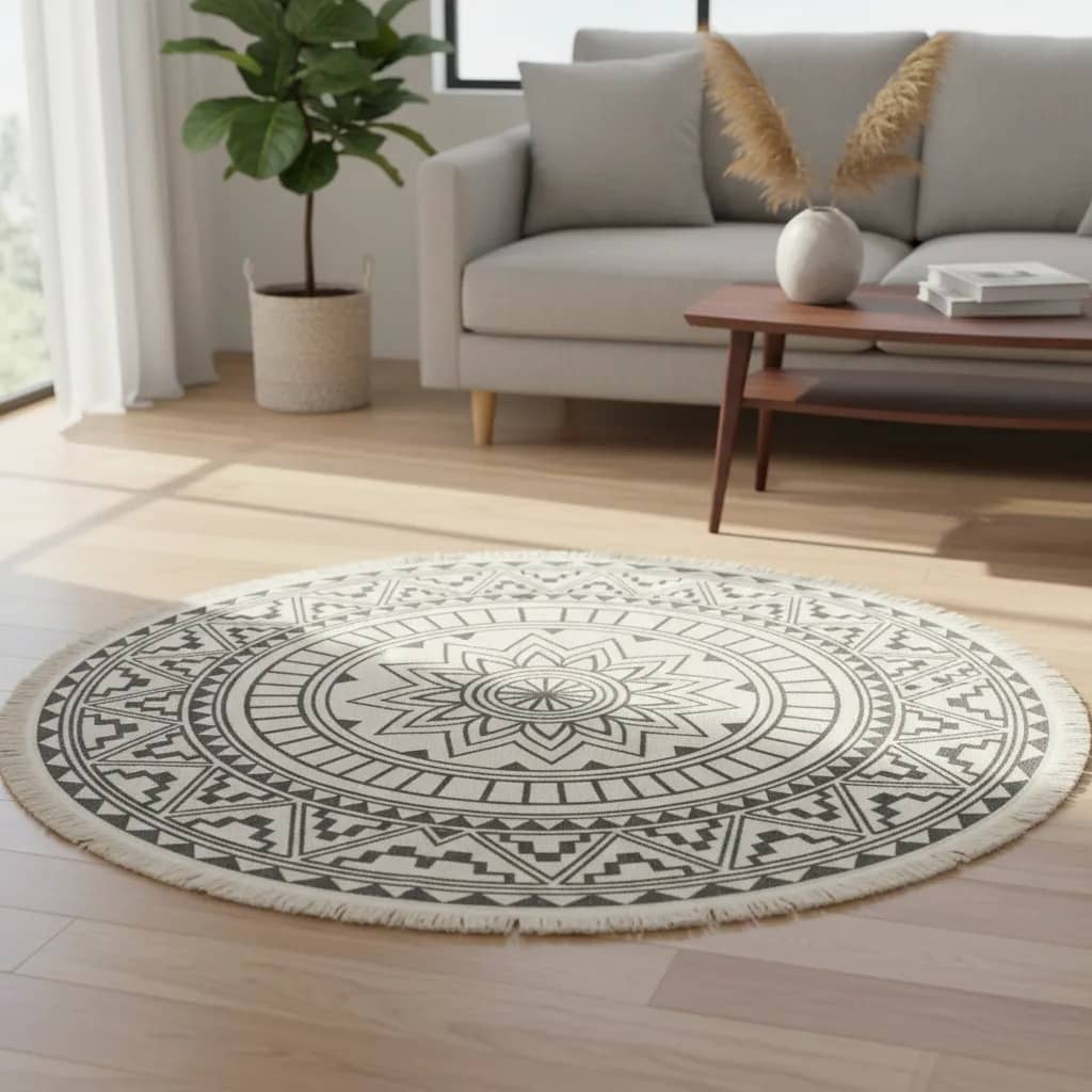 Incorpora esta alfombra en tu hogar y experimenta cómo su diseño único transforma la atmósfera. Es una opción versátil que se adapta a diversos estilos de decoración, desde lo contemporáneo hasta lo bohemio. Dale a tus ambientes un aire fresco y acogedor con la alfombra Mandala, un elemento que refleja tu personalidad y estilo de vida.