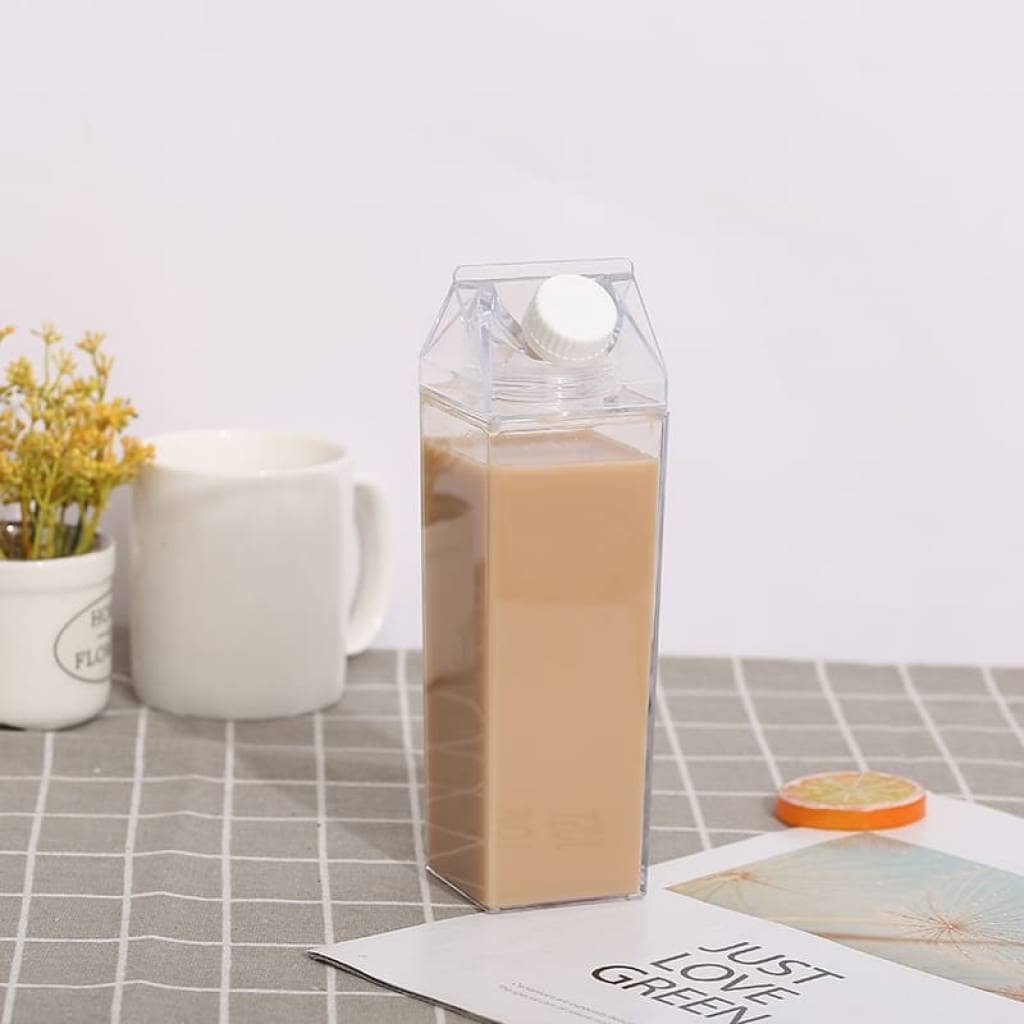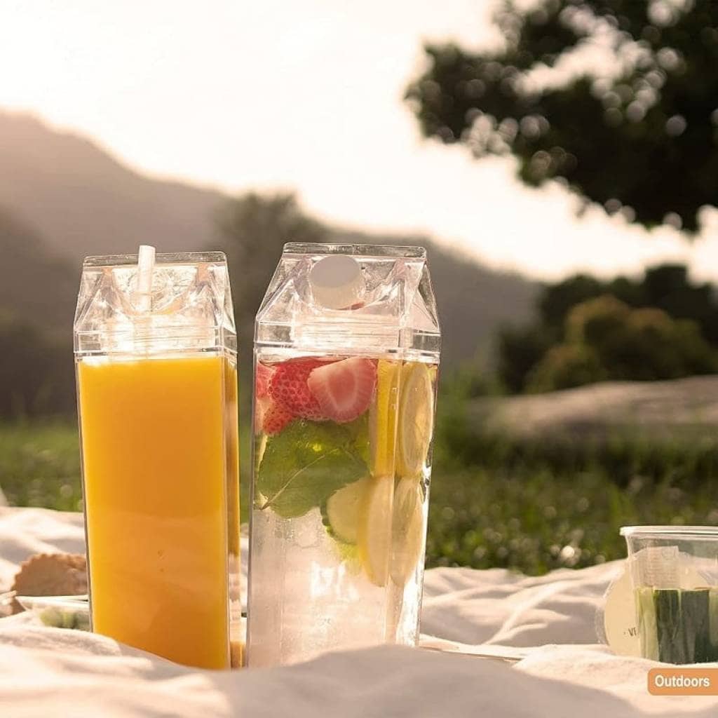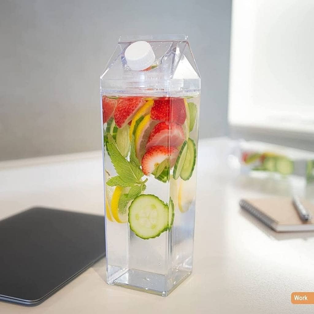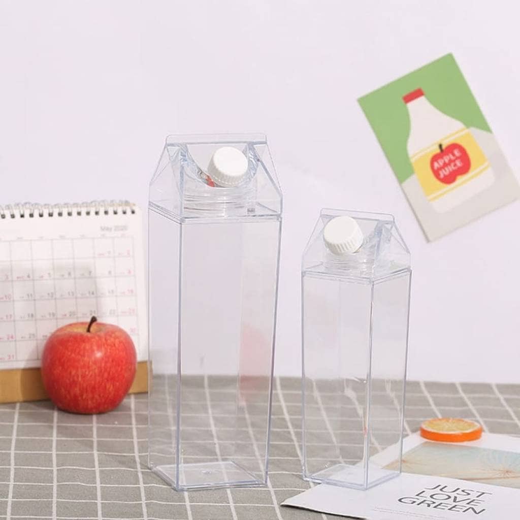 Reduce el impacto ambiental al usar las botellas acrílicas estilo caja de leche. Su diseño es resistente y duradero, perfecto para reemplazar las botellas plásticas. Gracias al acrílico libre de BPA, puedes lavarla y utilizarla las veces que quieras, además de que no contamina tus alimentos.