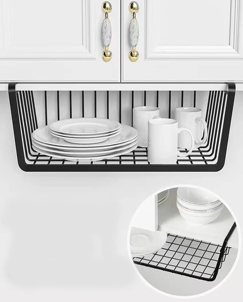 Libera espacio: Añade al instante espacio de almacenamiento adicional utilizando la parte inferior de tu estante. Coloca la cesta debajo del estante en cualquier lugar de tu casa; puedes utilizar el organizador debajo del estante en el armario, despensa, escritorio, y heladera para almacenar vajilla, repasadores, accesorios de baño, servilletas, libros, aperitivos, y alimentos.