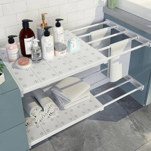 Adhesivo con fuerte adherencia: el adhesivo se utiliza como una alternativa a los tornillos, así que simplemente di adiós a los agujeros, marcas o residuos pegajosos en tus paredes. La instalación sin herramientas significa que no daña tu pared. Puede cargar 13 kilos, de 5 a 6 botellas de tamaño completo durante mucho tiempo.