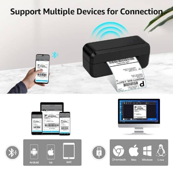 Compatible con múltiples sistemas operativos: Puede conectar la impresora a su smartphone o tabla (Android e iOS) por Bluetooth para imprimir etiquetas usando la aplicación gratuita «Labelife». También puede conectar la impresora a su notebook o PC (compatible con Mac 10.11 en adelante, Windows 7/8/10/11, Chrome y Linux Centos 7.0/Ubuntu 12.04 en adelante). NOTA: Solo es posible conectar la impresora a notebooks o PCs a través de un cable USB.
