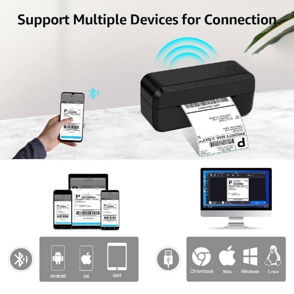 Variedad de etiquetas: La impresora de etiquetas AM-243 es compatible con etiquetas térmicas de cualquier marca de entre 1,0″ a 4,6″ (25,4 – 118 mm), y admite etiquetas plegadas y en rollo. Útil para imprimir fácilmente cualquier tipo de etiqueta: texto, imágenes, códigos QR, códigos de barras, etiquetas de envío, etiquetas de ropa, identificadores de cables, y frascos, etc.