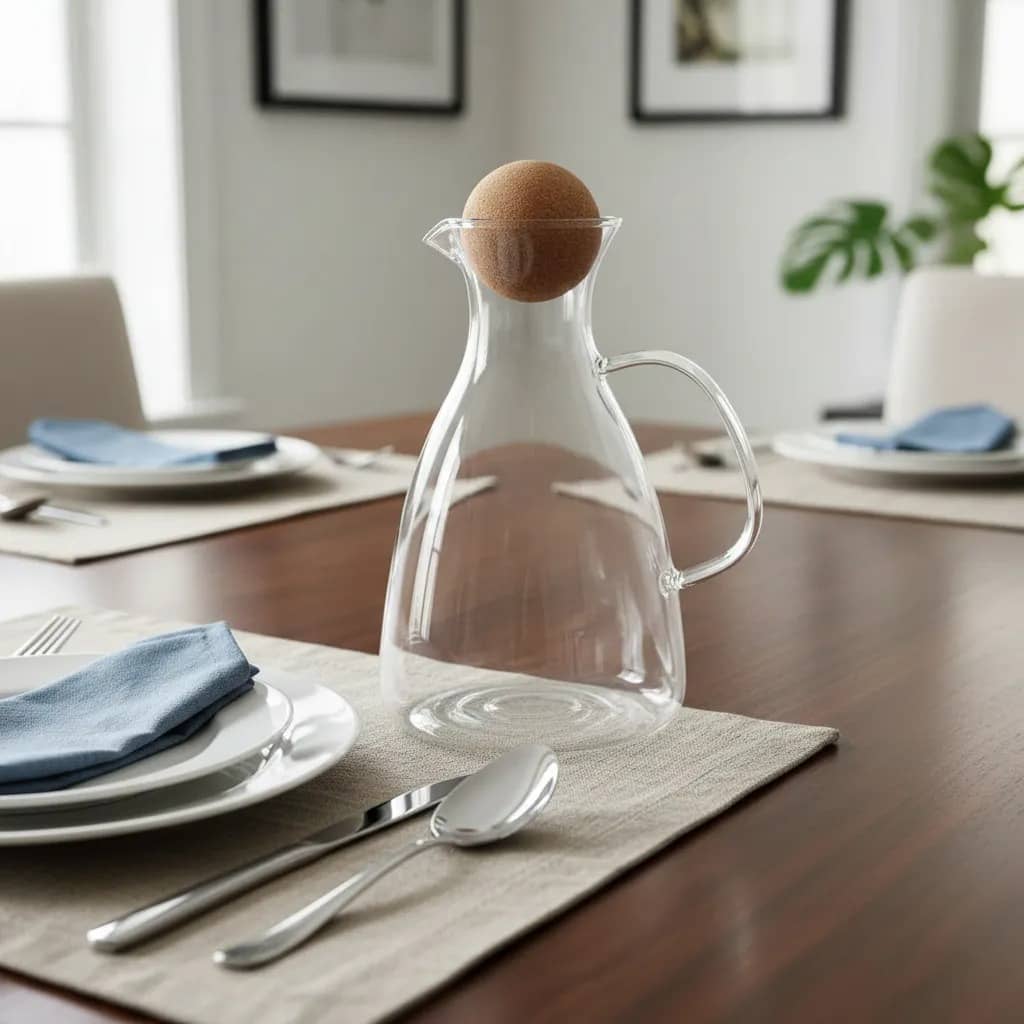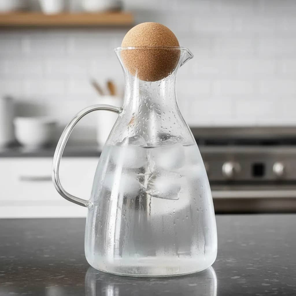 • Estilo natural: La tapa de esfera en corcho no solo protege tu bebida, sino que le da ese look orgánico que está tan de moda y que queda bárbaro con cualquier vajilla.
