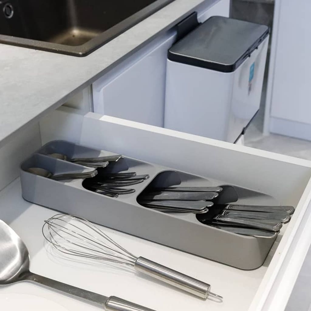 Fabricado con materiales de alta calidad, el organizador de cubiertos y cajones es duradero y resistente, capaz de soportar el uso diario en la cocina. Su diseño compacto y ajustable permite adaptarse a diferentes tamaños de cajones, optimizando así el espacio disponible.