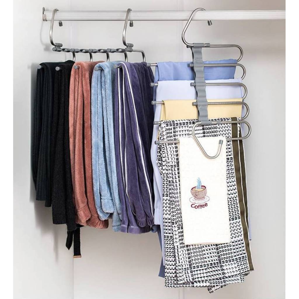 Perchas de 5 niveles que ahorran espacio. Cada percha puede contener al menos 5 jeans, pantalones u otras prendas. Maximiza para ahorrar espacio en tu armario y mantenerlo limpio y ordenado.