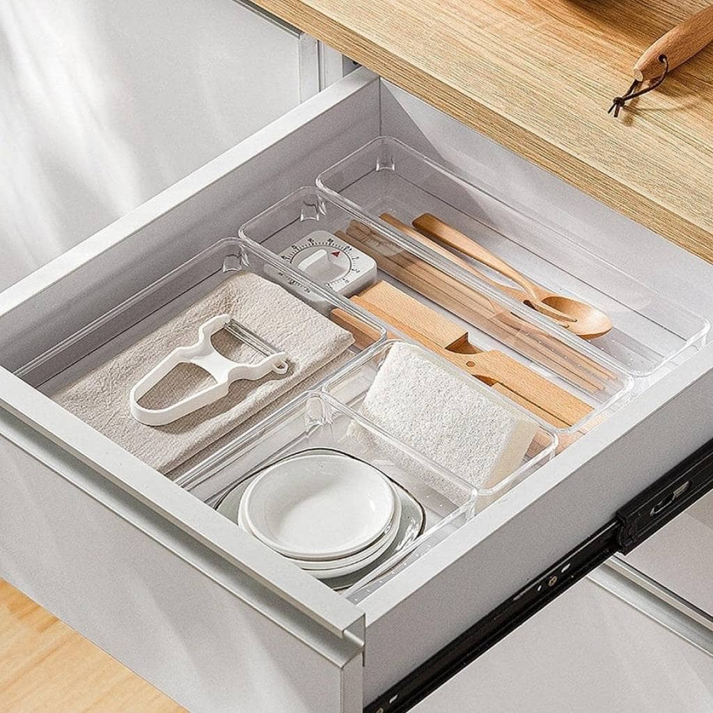 Estos contenedores te ayudarán a maximizar el espacio en tus cajones, permitiéndote organizar y separar diferentes tipos de artículos de manera eficiente.